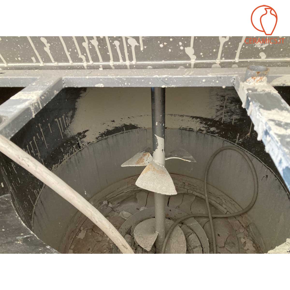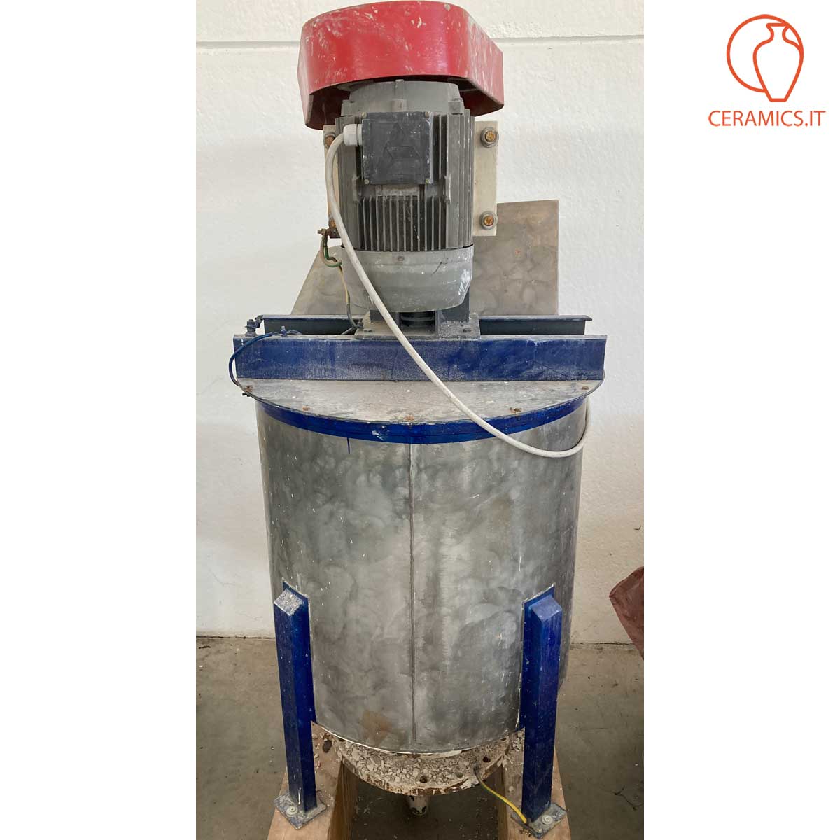 - DESCRIPTION: Fast steel agitor with double propeller for barbotine, container capacity 400 liters, power of 4 Kw, gears 960, internal sizes diameter cm 80 heigth cm 80