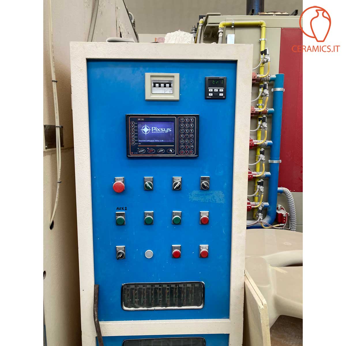 - DESCRIPTION: 13 cubic meter second hand gas kiln, height 160 cm, width 130 cm, deepth 500 cm, 2 removable charts, n. - burners, insulating cermic fiber, temperture till 1100° C. Control panel: new ATR 313 PYXYS. Weight about kg 5000.