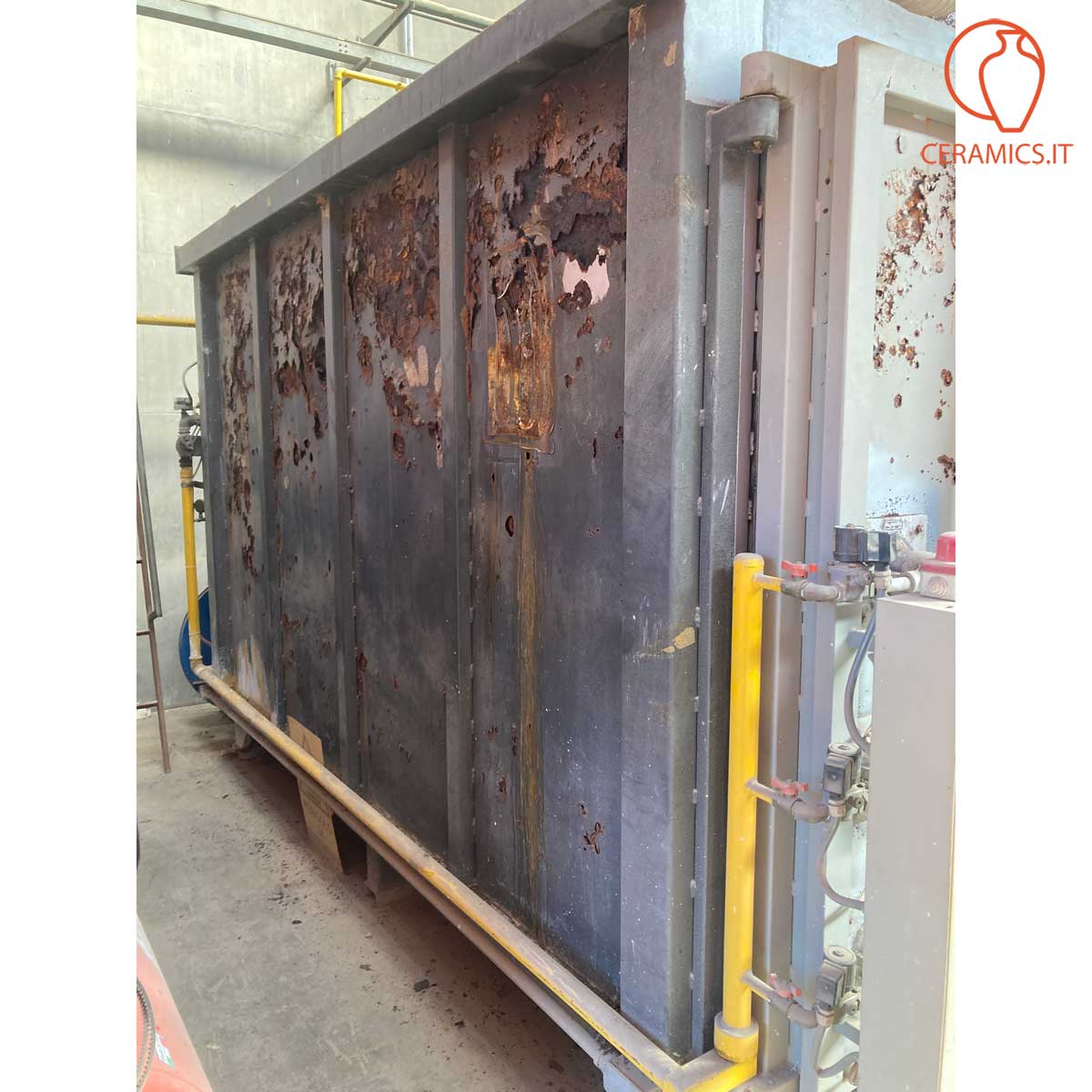 - DESCRIPTION: Second hand Four cubic meters Pagnotta ceramic kiln, height 270 cm, width 245 cm, deepth 440 cm, 2 removable charts, n. 6 burners, insulating cermic fiber, temperture till 1100° C. Control panel: new ATR 313 PYXYS. Weight about kg 5000.