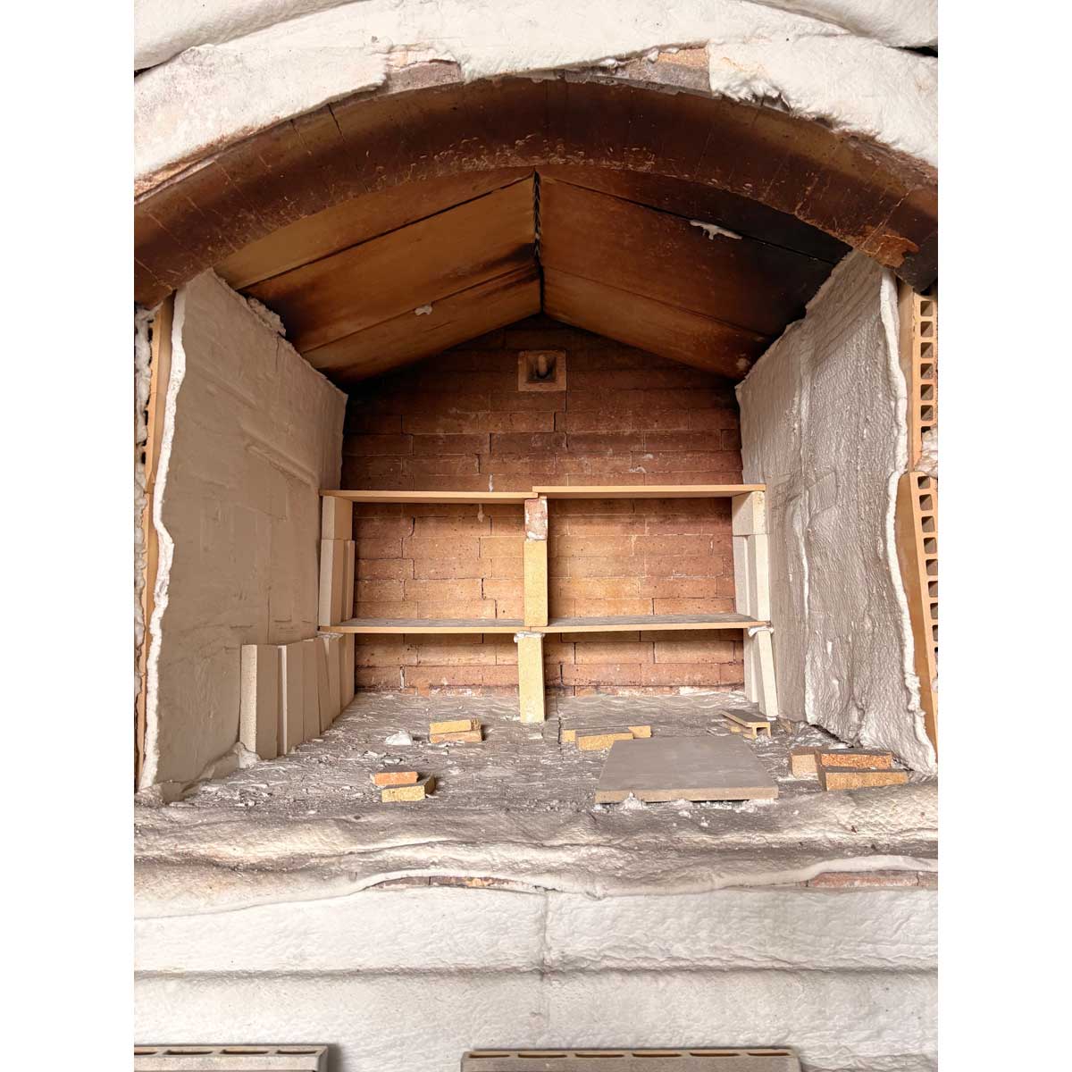 muffled chamber composed of 60% alumina refractory bricks and plates with an ISO1000 brick vault