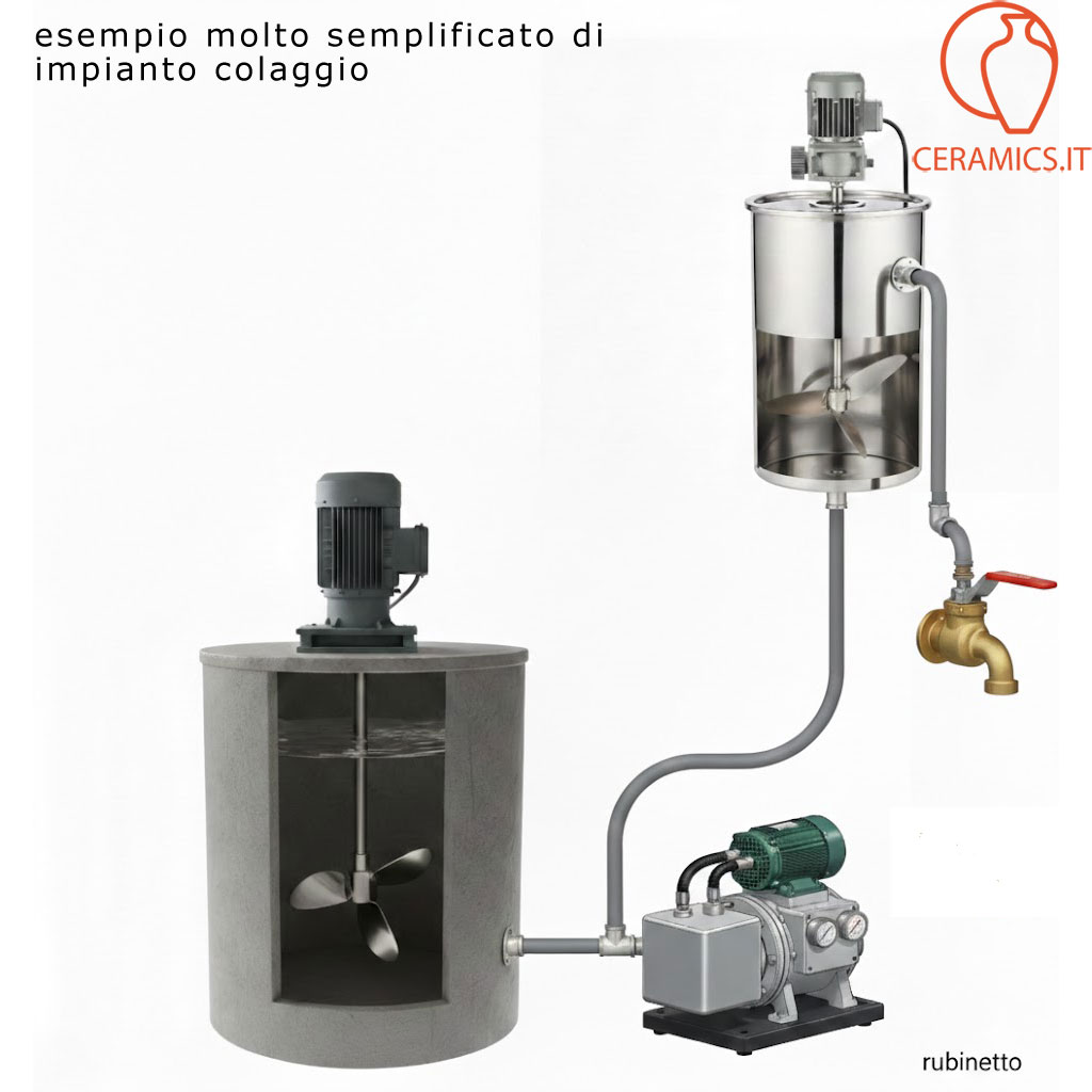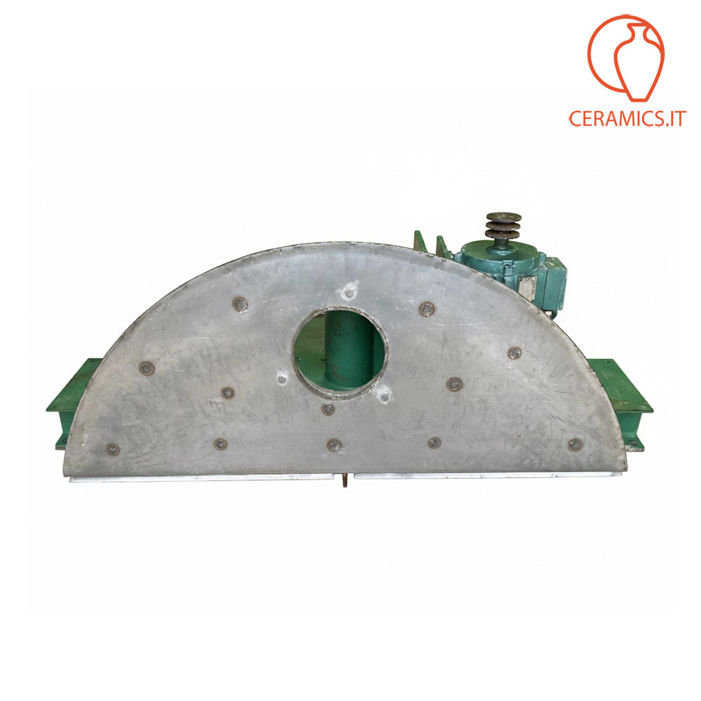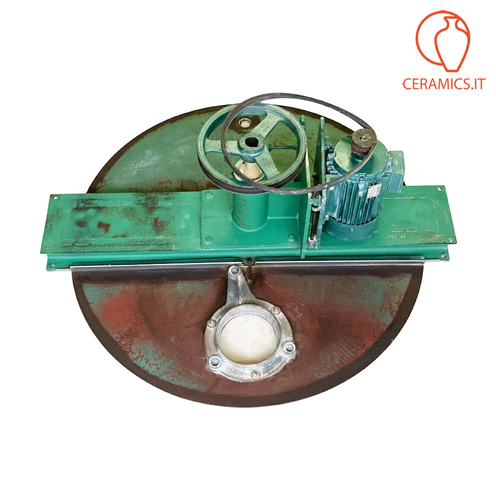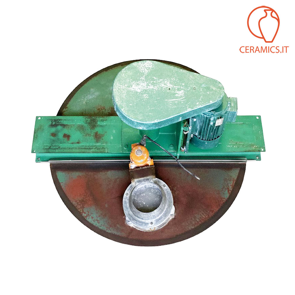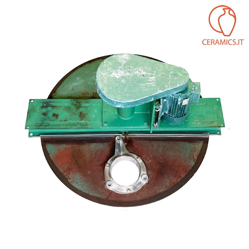 - DESCRIZIONE: agitatore veloce usato per barbottina in acciaio, il serbatoio che manca era in cemento del diametro di cm 90 profondità 160, capacità 450 litri in volume, motore a 380 volts, kw 2,2 a 1420 giri. Questo agitatore è privo di vasca, la stessa si può fare sia in cemento che in acciaio, può essere sia interrata che esterna, anche parzialmente interrata in modo da aevolare le operazioni di alimentazione dell'argilla da sciogliere. L'albero gira su due cuscinetti conici la cui sede è lubrificato dal grasso. L'agitatore è dotato di vibrosetaccio, il tutto perfettamente funzionante. Nella prima foto della galleria c'è un esempio di come può essere fatto un impianto che prevede il miscelatore veloce messo a pavimento, oppure interrato, tramite una pompa la barbottina viene pompata sulla vasca possibilmente in acciaio, provvista di motore e riduzione per fare girare l'elica lentamente. Dalla vasca in acciaio parte un tubo che per caduta fa scendere la barbottina nell'impianto di distribuzione.