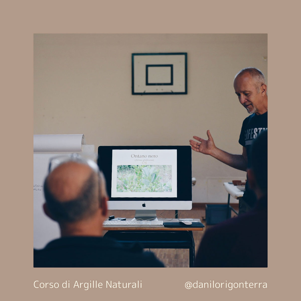 - Il pomeriggio escursione alla ricerca di argille nei dintorni. Leggeremo la morfologia del paesaggio, la flora e la fauna che ne indicano la presenza, primi test sul posto. Porteremo poi in laboratorio le argille per raffinarle e lavorarle.