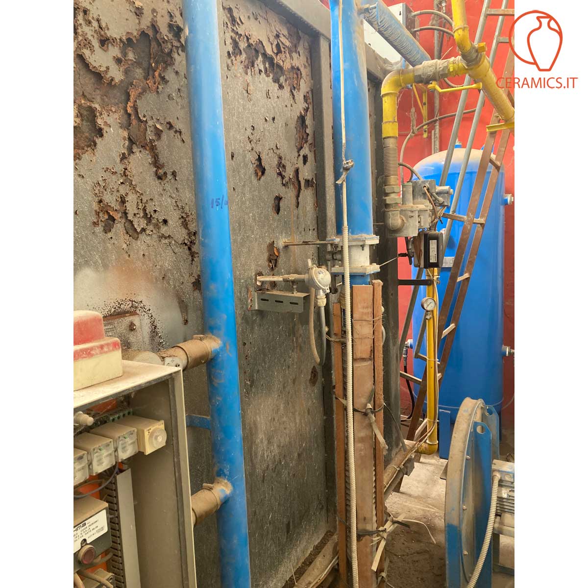 - DESCRIZIONE: Forno Pagnotta usato da 4 metri cubi, altezza 225 cm (+ scambiatore di calore), larghezza 220 cm, compresi 2 carrelli di carico, coibentazione in fibra ceramica, 6 bruciatori, temperatura massima 1100° C. Controller: ATR 313 PYXYS. Peso del forno circa 5000 kg.